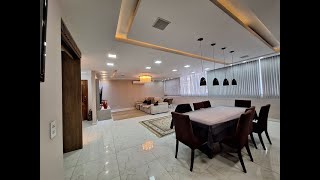 Móveis planejados de alto padrão; tetos trabalhados com luz indireta; iluminação natural abundante.