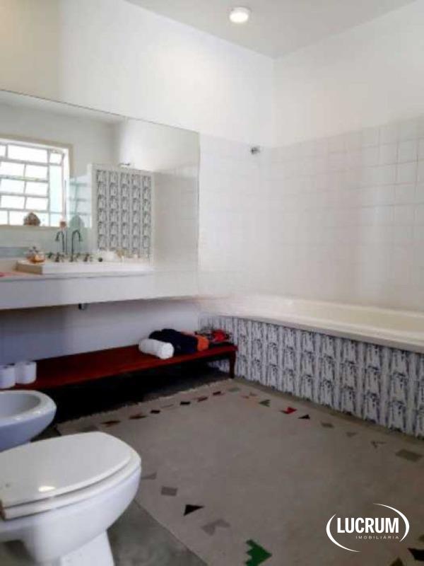 Casa com 2 andares. Primeiro andar com 2 salões, lavabo, banheiro social, cozinha e lavanderia, ampla área interna descoberta. Acesso ao segundo piso por escada linear de madeira. No segundo andar há 5 quartos amplos, varandas e banheiro completo grande.