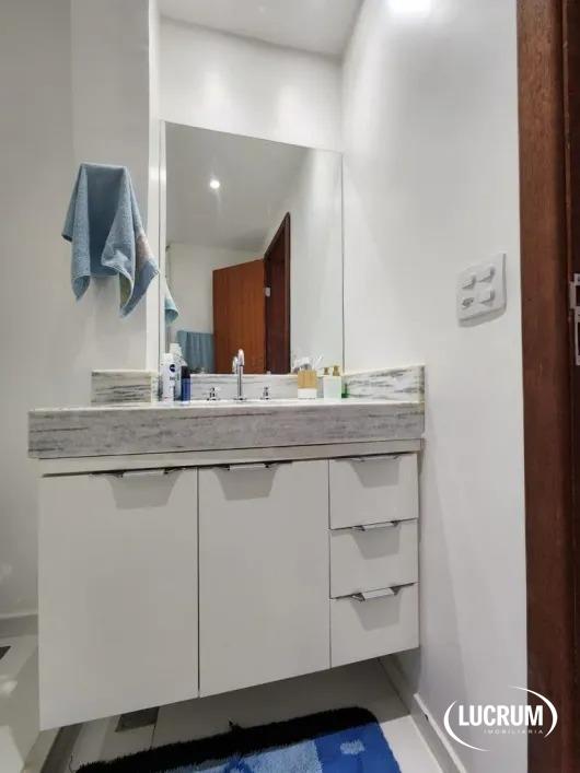 Banheiro Social com piso em porcelanato, janela com esquadrias de alumínio, bancada de mármore, amplo espelho, box blindex e louças/metais impecáveis;
