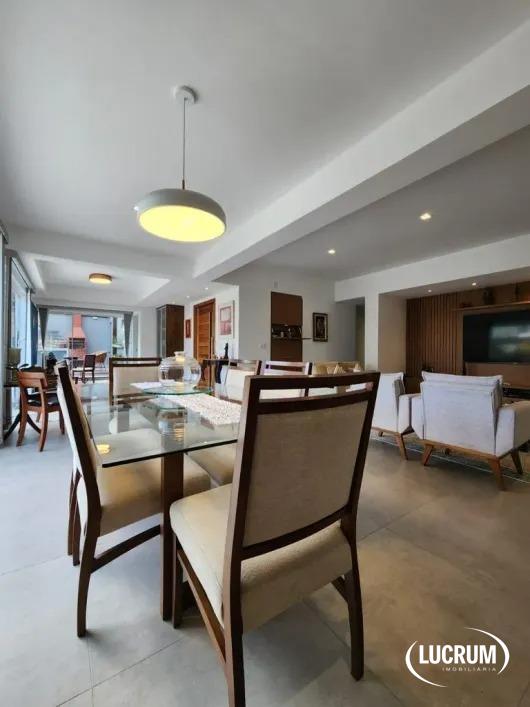 Cobertura Fabuloso Salão para 3 ambientes com portas de vidro blindex de correr, teto rebaixado em gesso, piso em porcelanato, split Lavabo com bancada de mármore, cuba de sobrepor, teto rebaixado em gesso, piso em porcelanato, estantes decorativas de madeira