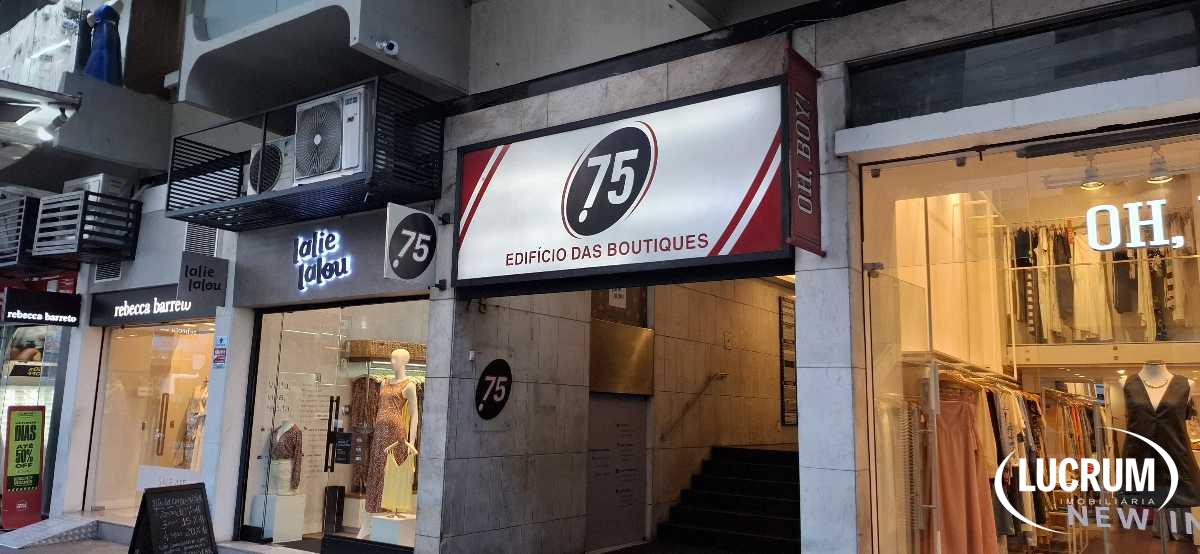 Lucrum Imobiliária vende sala comercial espaçosa, com grande janela (piso ao chão) de frente para a Rua Santa Clara, no edifício da Boutiques, com banheiro, em andar intermediádio.