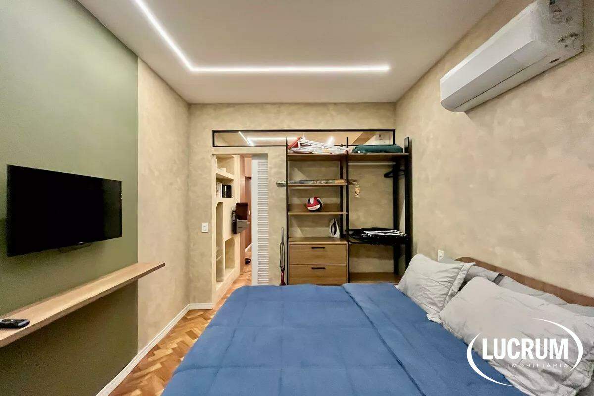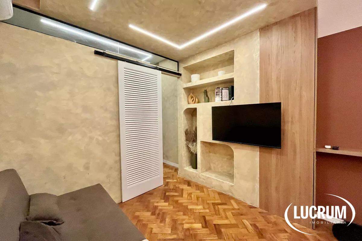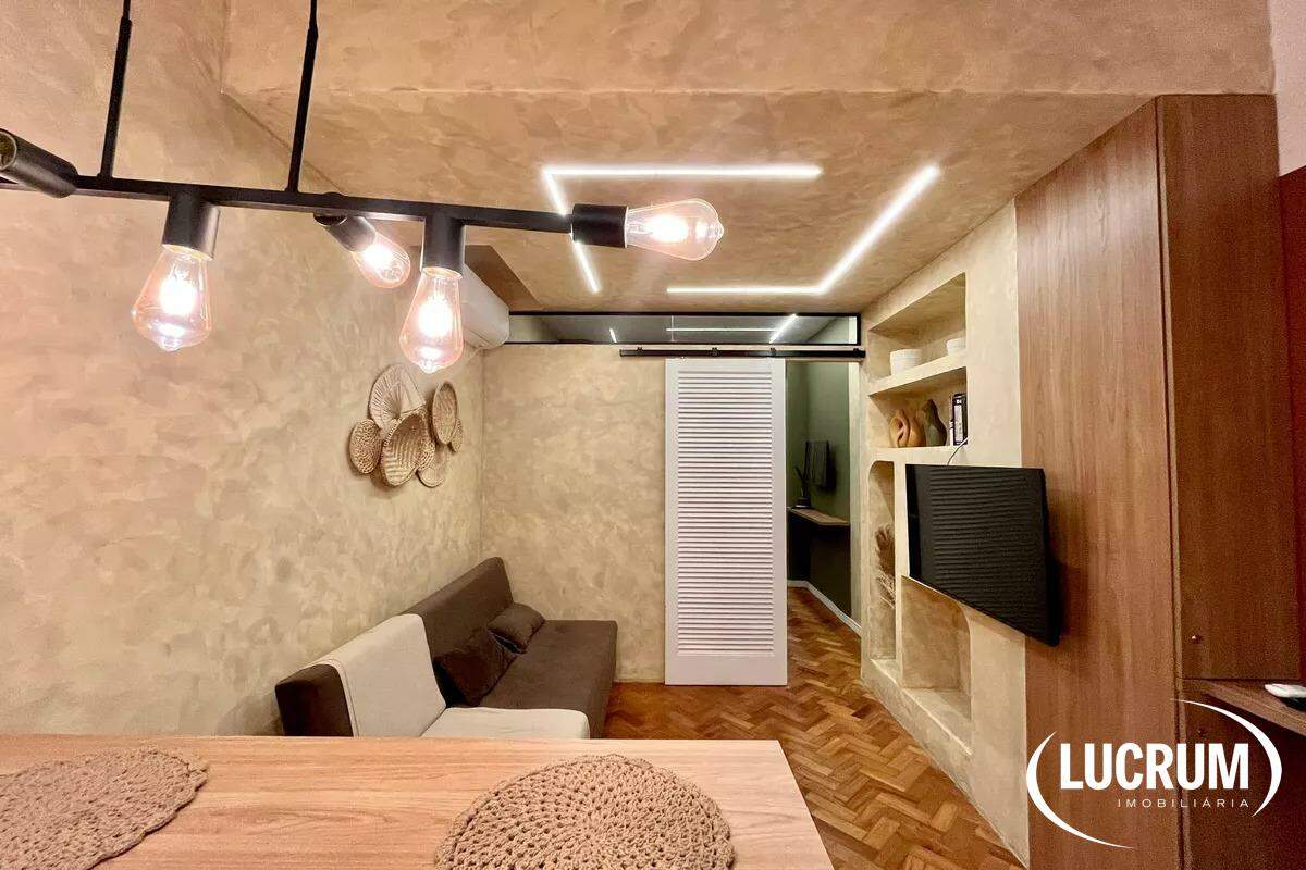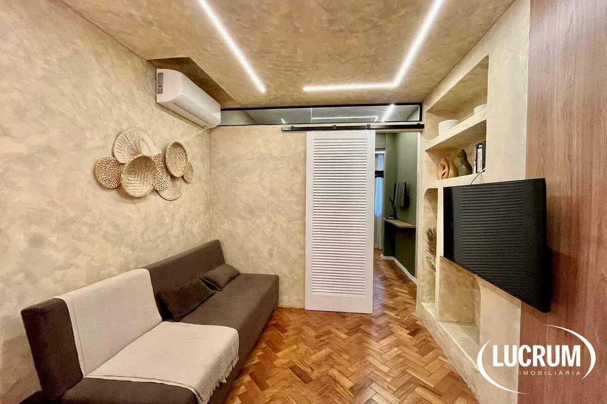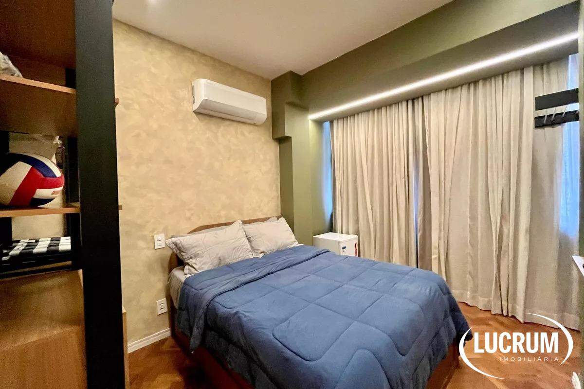 Pronto para locação de temporada, moradia ou locação de longo prazo. Finamente reformado e decorado. Quarto integrado com cozinha americana, ar-condicionado Split. Cozinha equipada com cooktop, microondas e geladeira. Amplo banheiro. Prédio com portaria 24 horas. Possibilidade de alugar vaga de garagem no próprio prédio.