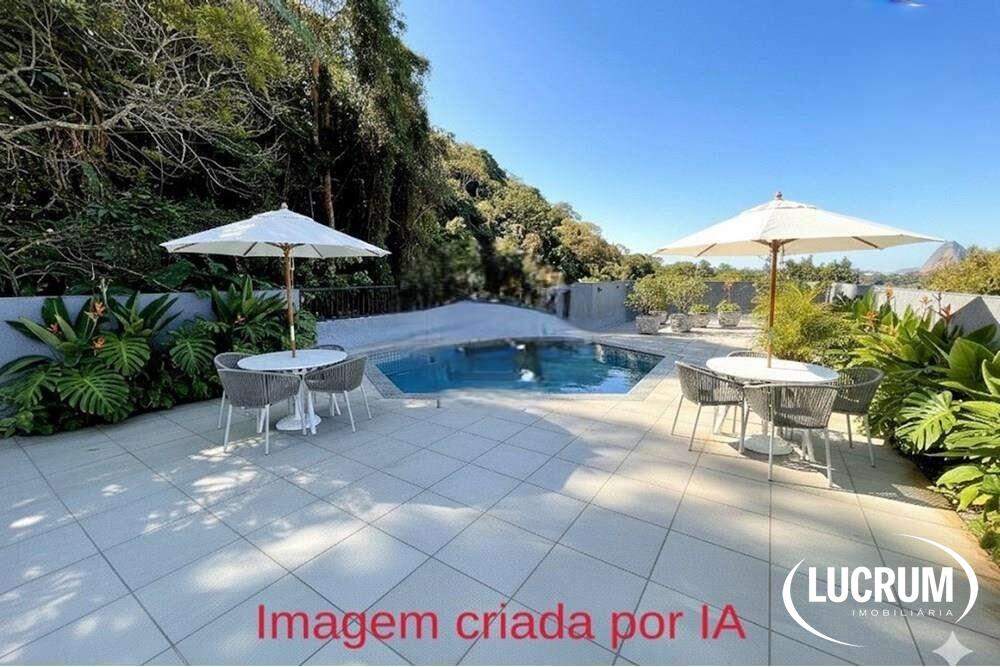 Casa a venda no Cosme Velho. 344m2 de área útil. 4 suites, 3 vagas cobertas, piscina, churrasqueira e uma vista linda