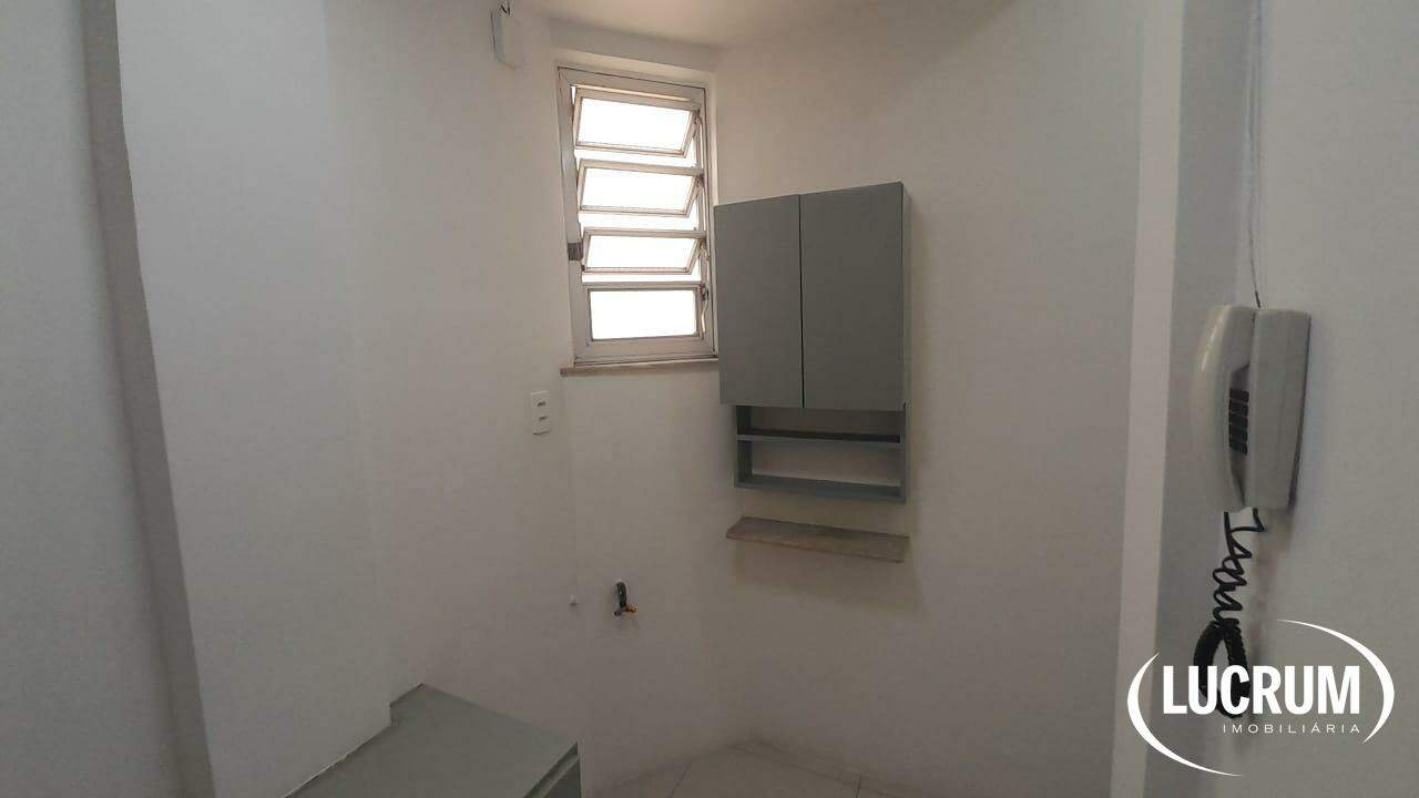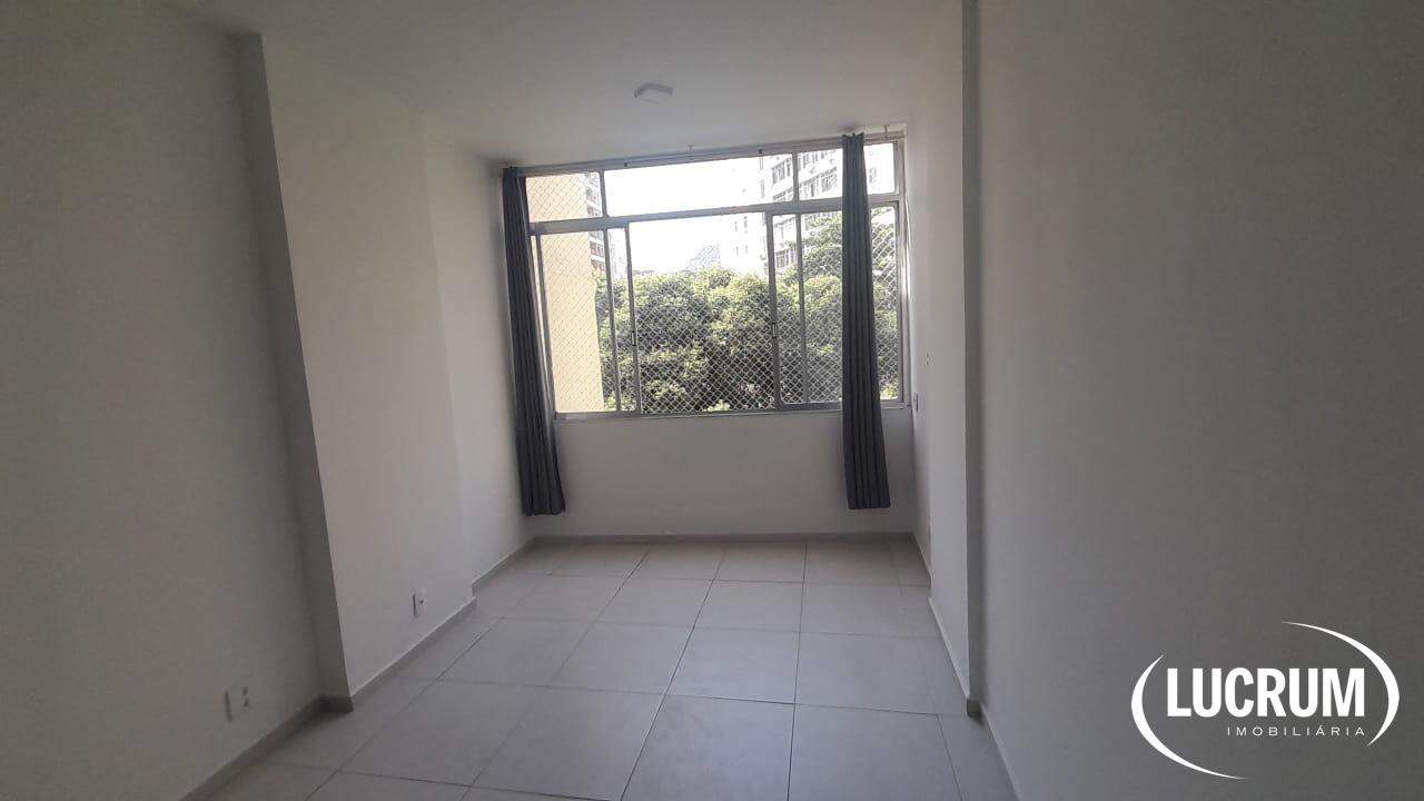 Lucrum Imobiliária aluga, apartamento de 46m², andar alto, frente, claro, muito arejado. Rua Inhangá em Copacabana, Posto 3. Composto por: quarto espaçoso com armário embutido, sala com estante embutida, banheiro com espaço para máquina de lavar, cozinha com armários e espaço para geladeira, e portaria 24h.